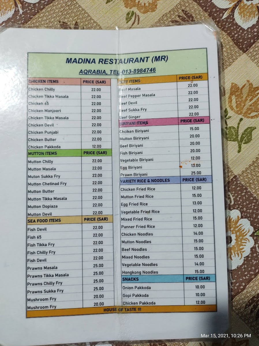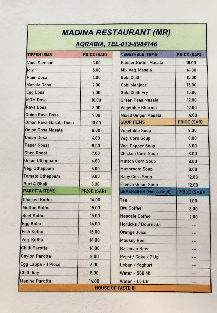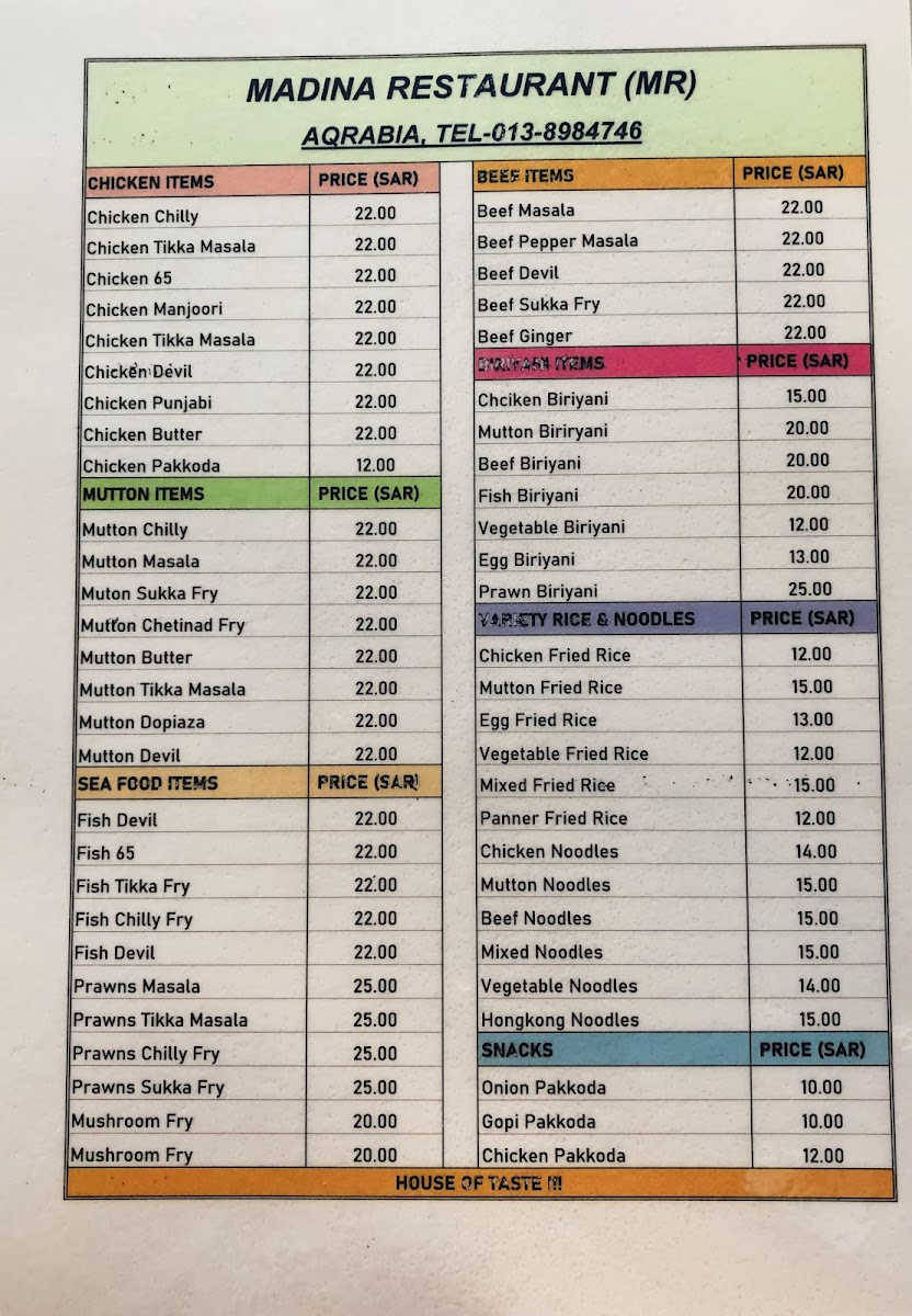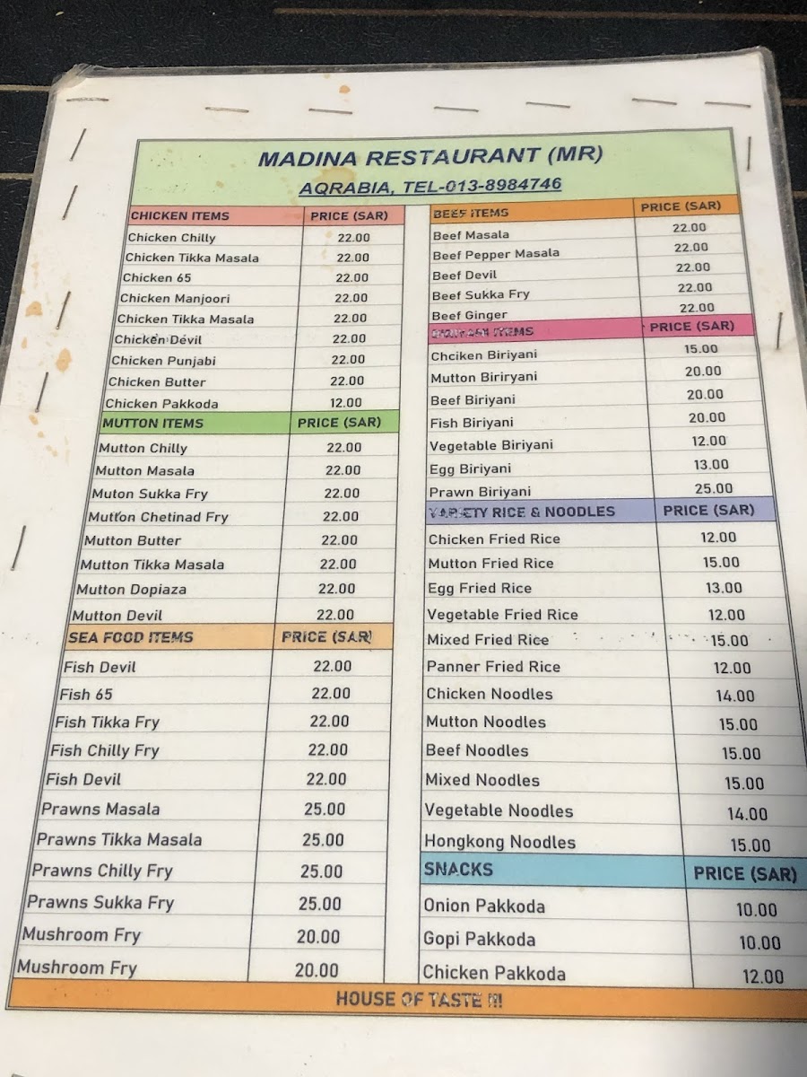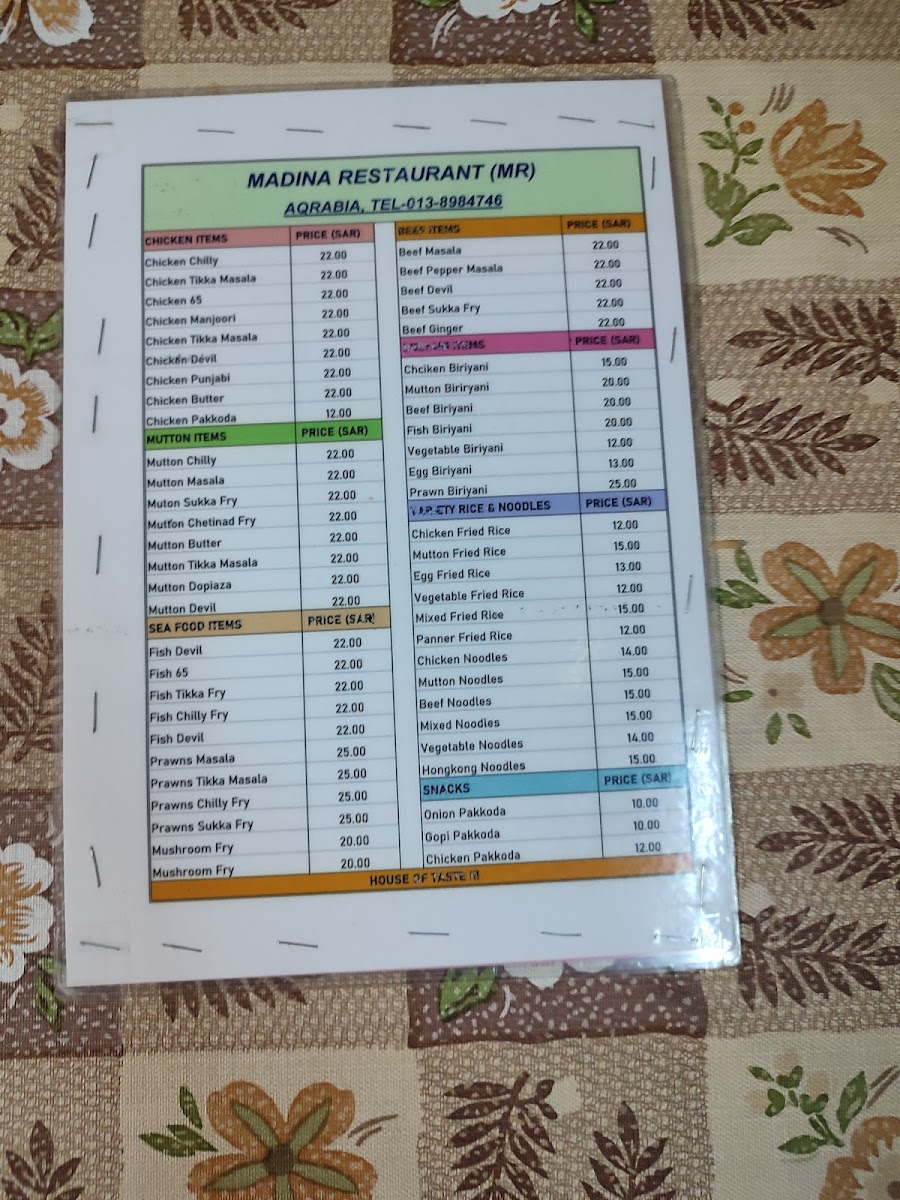 Madeena Restaurant Menu